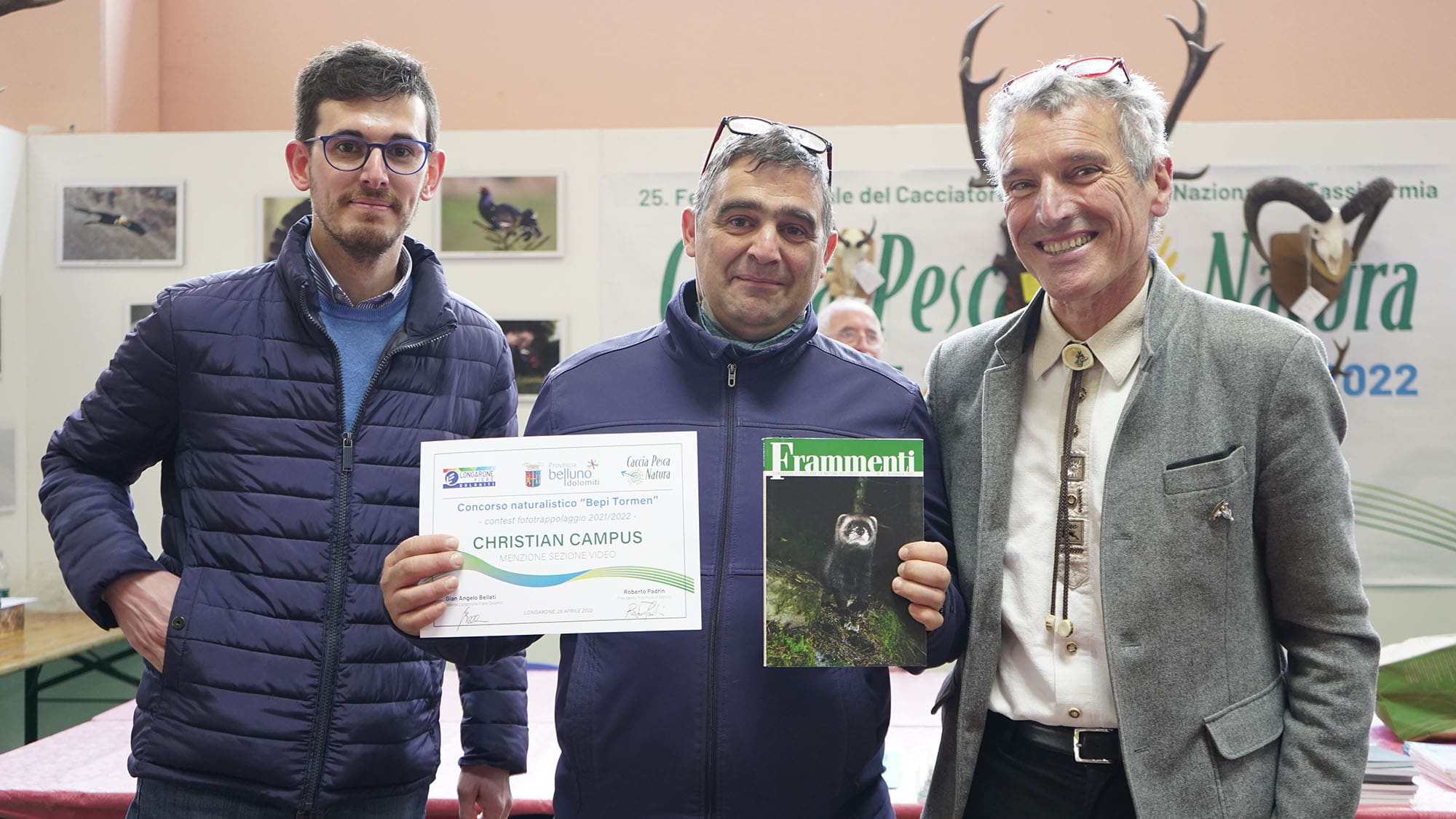 A ciascun vincitore sono andati in premio una fototrappola professionale 4k, offerta dai Distretti Venatori della provincia di Belluno, la serie completa della rivista naturalistica “Frammenti” e composta da 11 numeri, grazie all’Amministrazione provinciale di Belluno e l’ingresso accompagnato a tutte le prossime fiere del 2022 organizzate da Longarone Fiere Dolomiti. Per la Fiera, il saluto di Chiara Bortolas del Consiglio di Amministrazione, che ha voluto sottolineare come il marito di Silvana Da Col sia “stato un uomo di scienza, grande naturalista, che ha davvero amato il territorio bellunese e ha saputo, attraverso le sue ricerche e con il fototrappolaggio, individuare, seguire e documentare numerose specie selvatiche nella nostra provincia”.