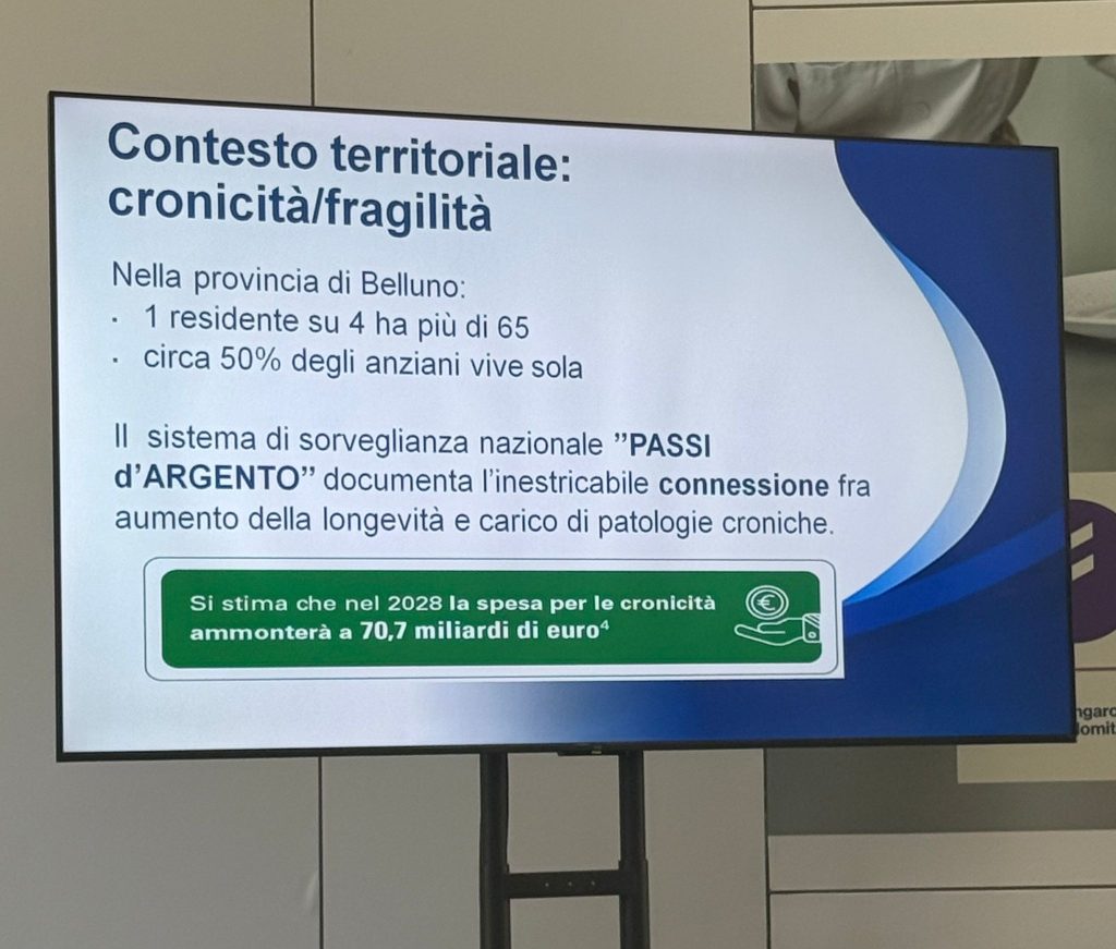 Il Dr. Davide Calderone dell’Università di Bologna ha illustrato come l’Intelligenza Artificiale e i dati ridefiniscano i criteri ed i significati di prevenzione. A seguire, il Prof. Diego Cason, noto sociologo ed attento analista della nostra Provincia, ha proposto una riflessione sulla percezione del corpo nel corso della storia, per arrivare a definire i dati che inquadrano la situazione attuale e prospettica della demografia provinciale. In chiusura, la Dr.ssa Marilisa Corso, dirigente dell’AULSS 1 Dolomiti per l’area territoriale, ha presentato la riforma del sistema salute in corso, sulle chiavi delle prossimità e della sostenibilità.