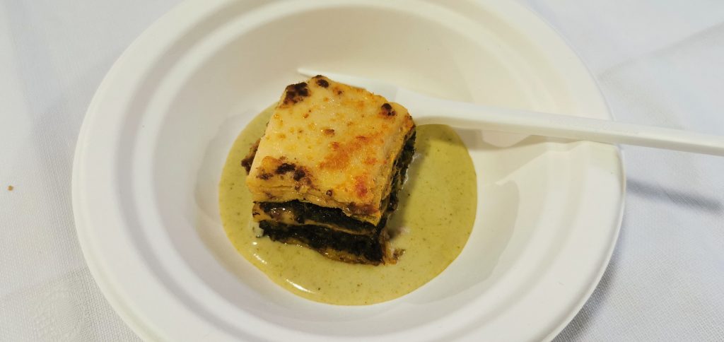 Nel secondo, ha cucinato un piatto a base di muflone, operando fianco a fianco con i Cuochi dell’Ass.ne Naz.le Alpini (ANA) di Belluno che sono anche referenti della Protezione Civile locale. Si è trattato più esattamente di Roberto Benericetti, (Prot. Civ. Sedico), Luciano Maddalosso (Prot Civ. Ponte nelle Alpi), Nardo Mognol (Prot. Civ. Alpago), che hanno preparato abbondanti fettuccine al ragù selvatico.