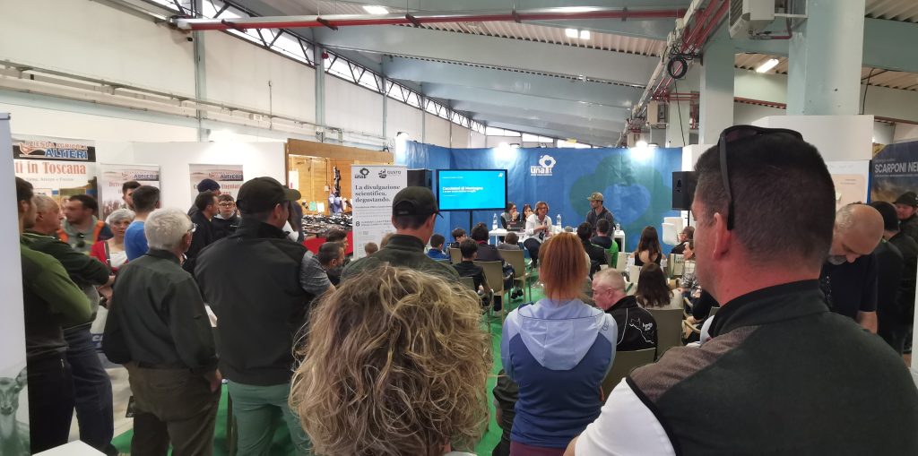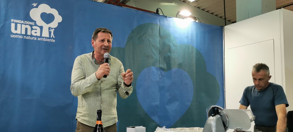 Dapprima attraverso due degustazioni di salumi selvatici, sia al termine dell’importante incontro guidato da Pietro Pietrafesa (Segr. Gen.le di Fondazione UNA) per illustrare i progetti di Fondazione UNA “Ambasciatori e Paladini del Territorio”, sia al termine del seguitissimo dialogo tra Marina Berlinghieri (Resp.le Relaz.ni Istituzionali di Fondazione UNA) e Andrea Cavaglià, famoso produttore, fotografo e cacciatore di montagna.
